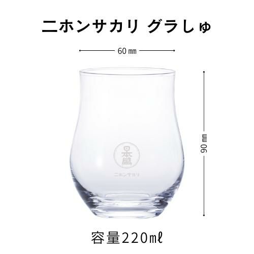 日本酒をおいしく飲むために作られた、日本盛のロゴ入り味わいグラス『グラしゅ』と一緒にお届けします。