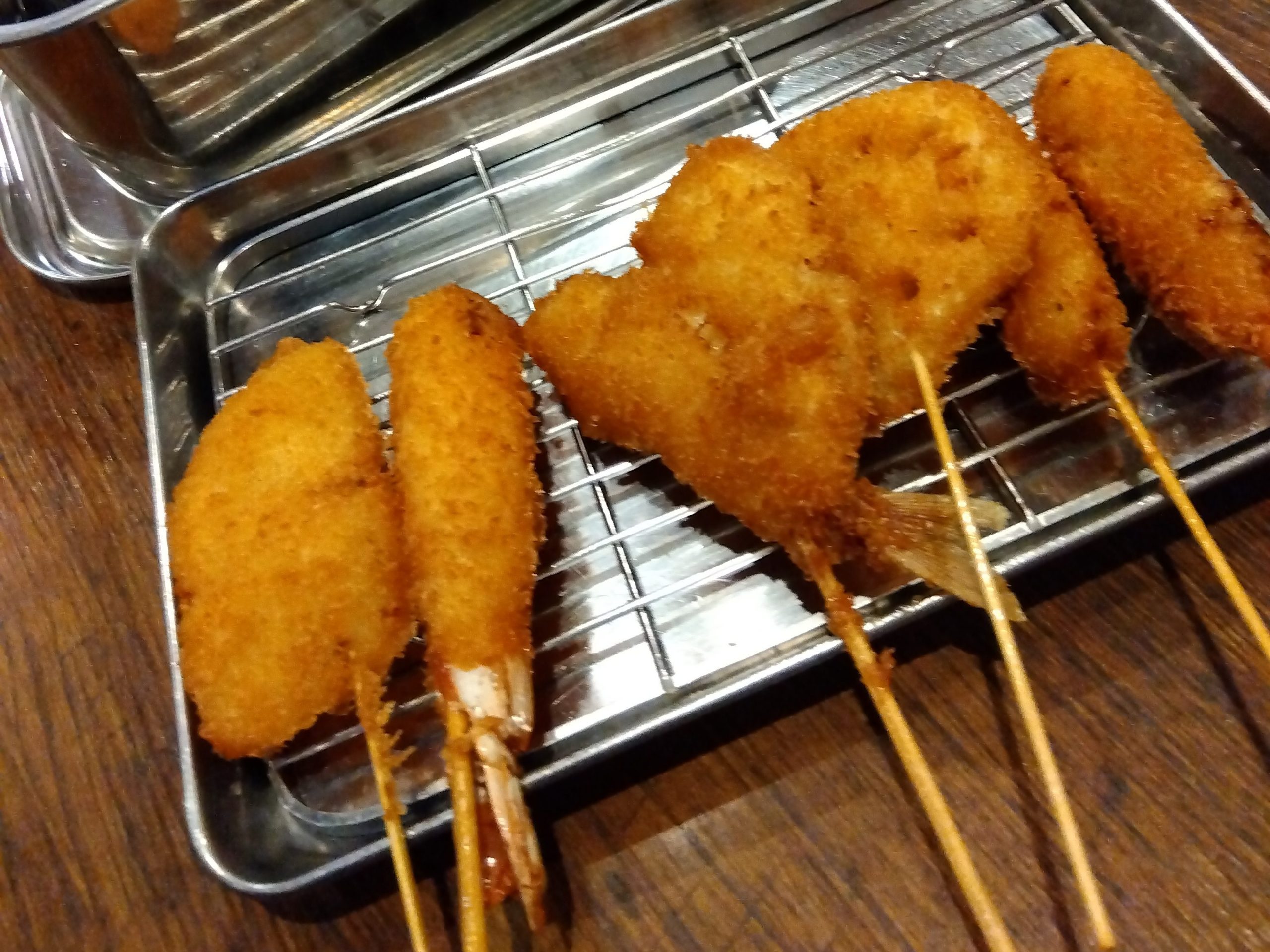 看板メニューの串カツはウィンナーから豚かつまで27種類とバリエーションが豊富!
